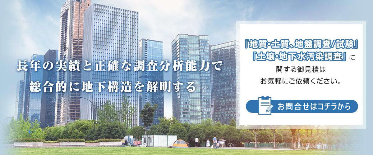 一般に“地質調査”と申しますと、地球地質の構造や遺跡調査などの地学及び考古学的なイメージがあるかも知れません。